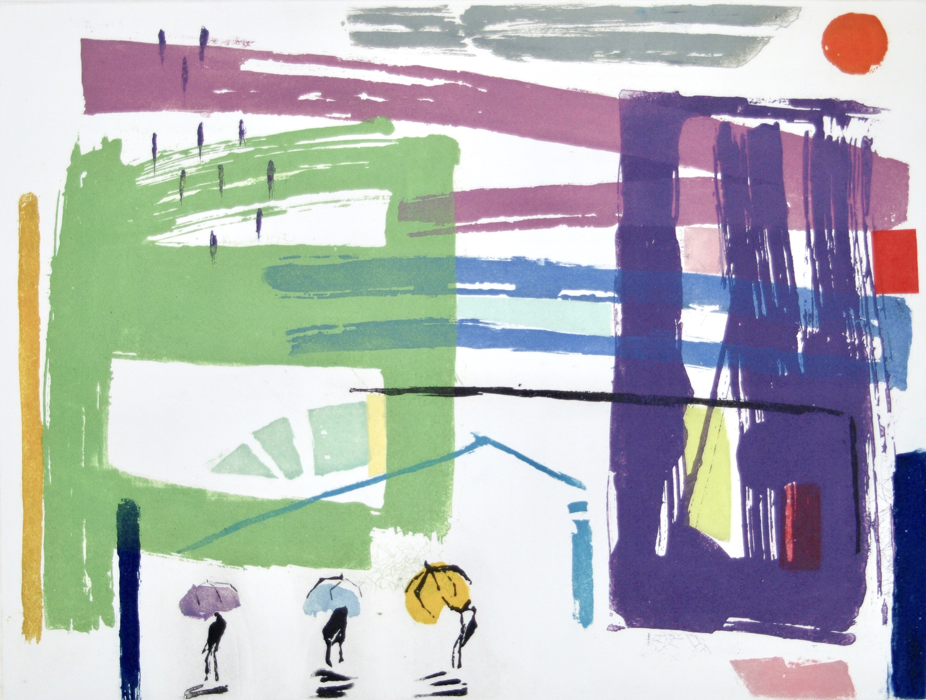 Each work is made and printed by hand, with most images involving more than one plate, for example a black and a colour plate. The colour is often applied with a ‘poupée’, a small piece of scrim, and further colour is sometimes added by the use of the chine collé technique, where fine oriental papers are added during the printing process. All of the editions are small.